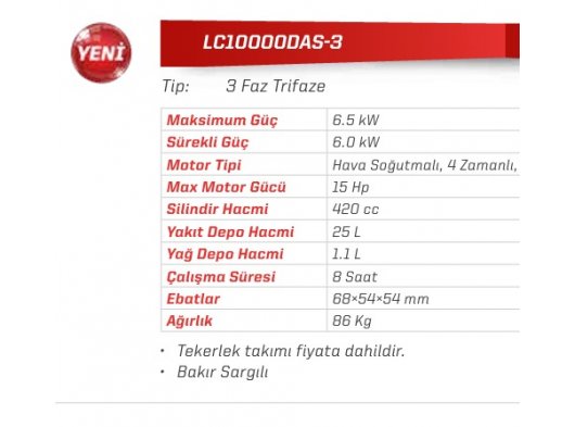 | Güç kVA | 10,0 |
